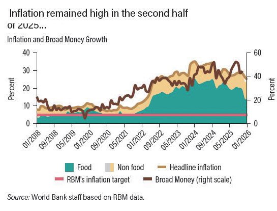 The Reserve Bank of Malawi (RBM) has revised its 2026 annual inflation projection upward to 24.8 percent, citing persistent risks that threaten to undermine efforts to stabilize prices. According to Nation Online, the central bank announced the adjustment in its first Monetary Policy Report for 2026. While the new forecast represents a decrease from the 28.4 percent average recorded last year, it remains significantly higher than the government target of 15 percent.